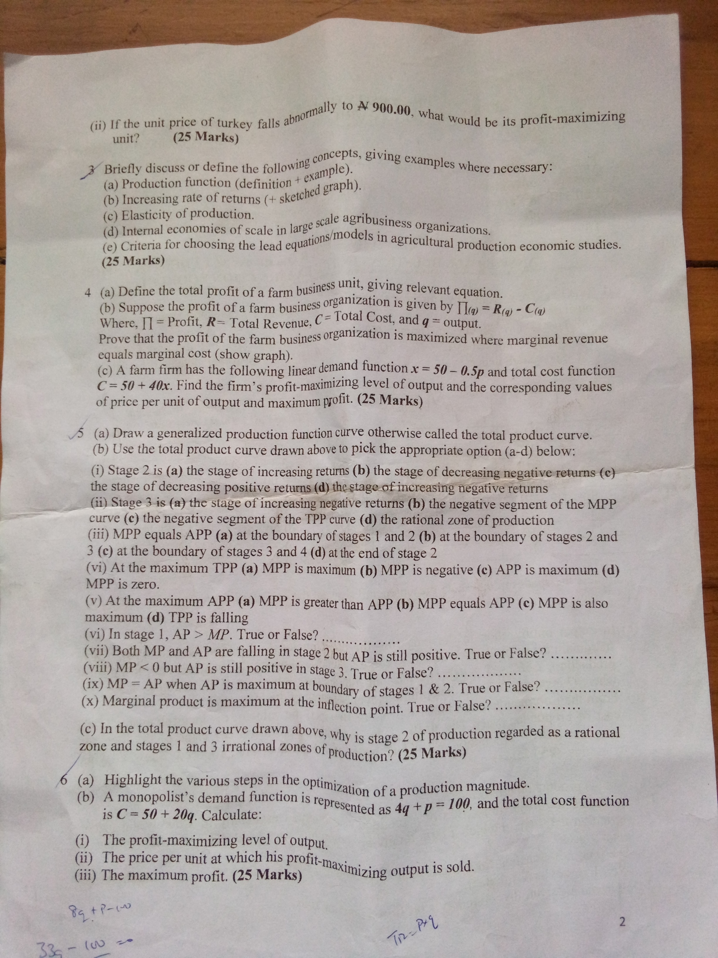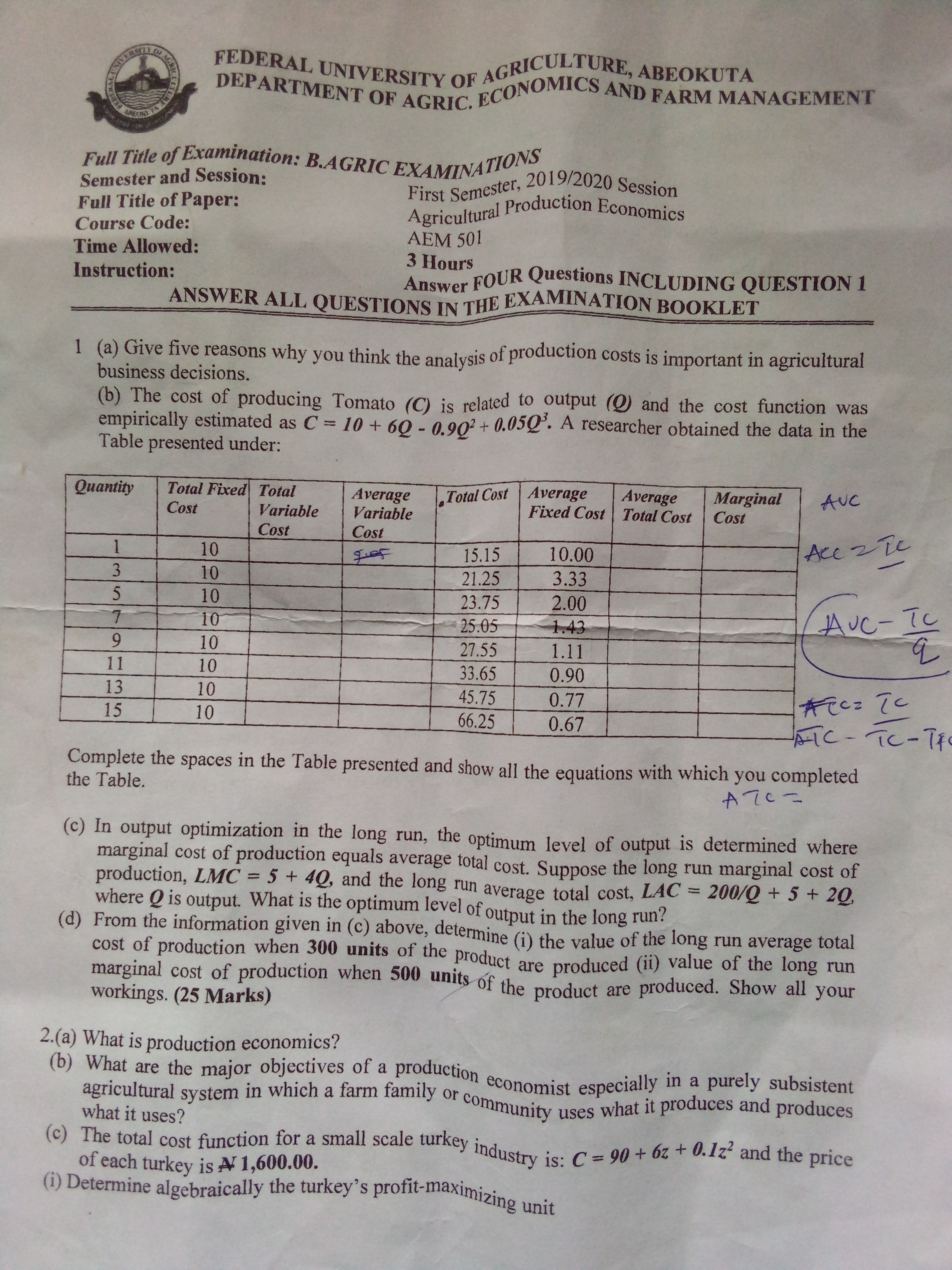 agricultural economics and farm management 2019/2020 aem-501(production-economics.